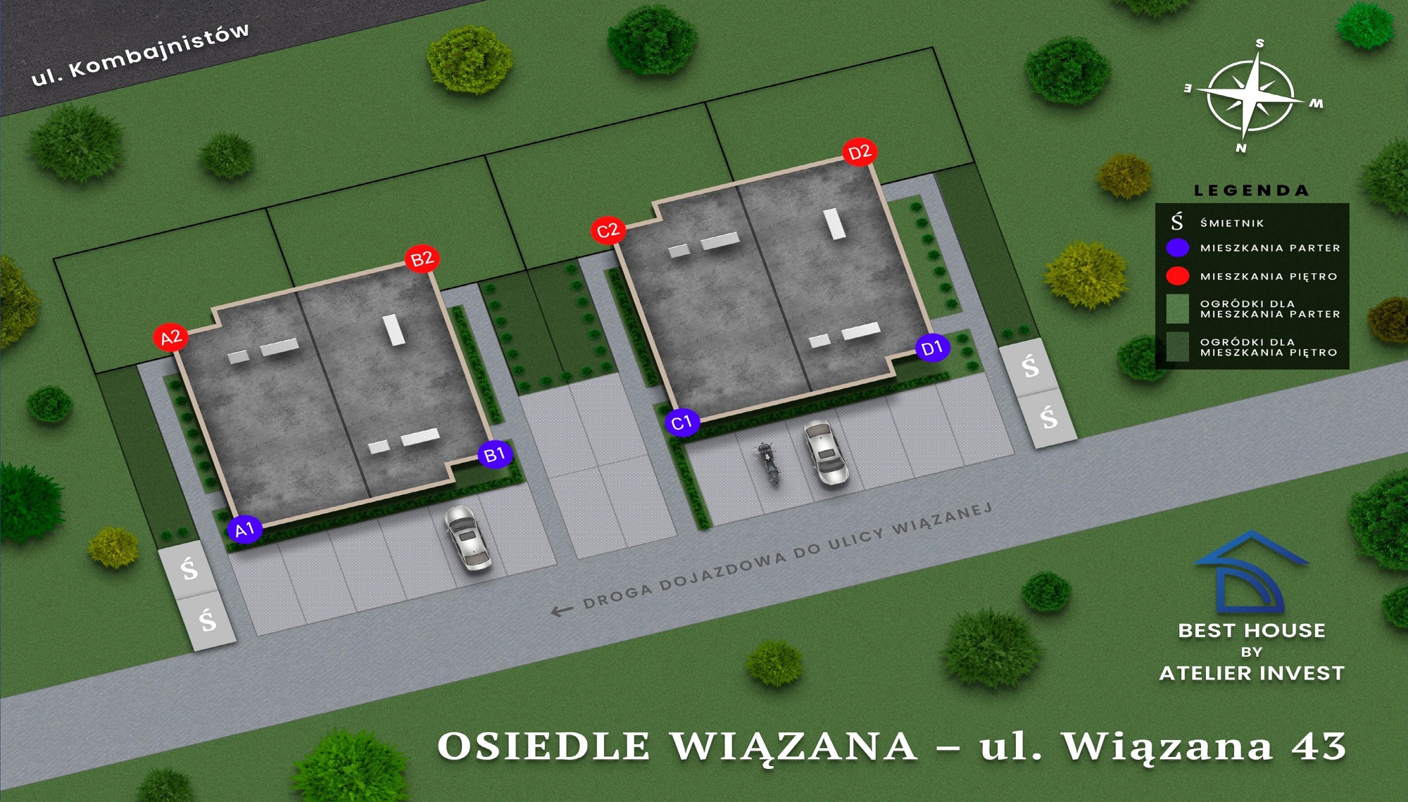 „Osiedle Wiązana” to wyjątkowa inwestycja 8 kameralnych i nowoczesnych mieszkań o zróżnicowanych metrażach: od 63 do 113m ², z uwzględnieniem części dziennej i wypoczynkowej.