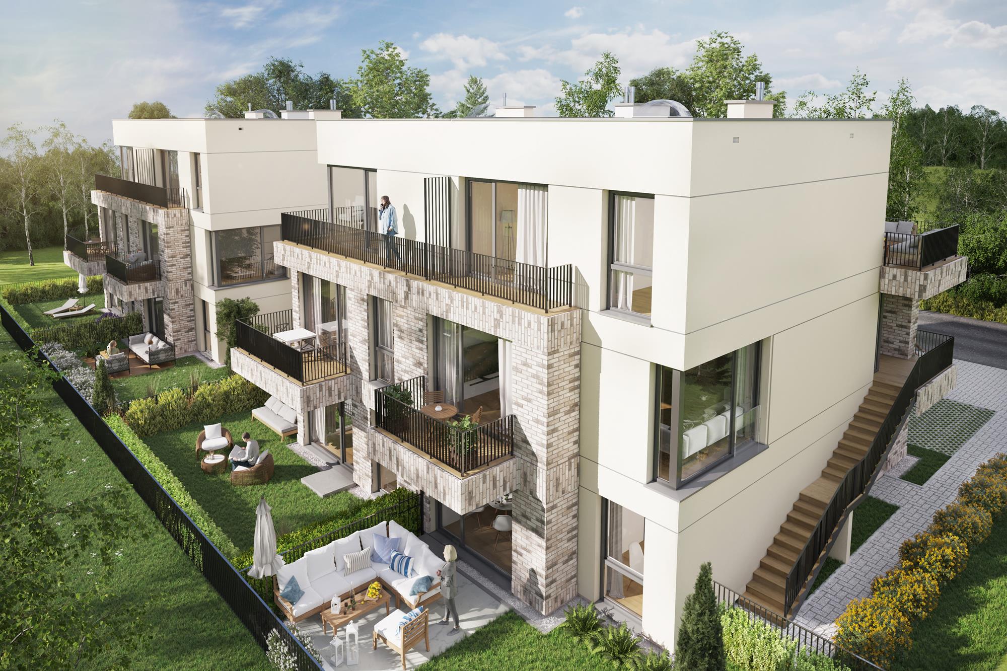 to propozycja mieszkań na parterze z własnymi ogródkami oraz dwupoziomowych apartamentów na piętrze z balkonami na każdej kondygnacji z przynależnym pasem zieleni.